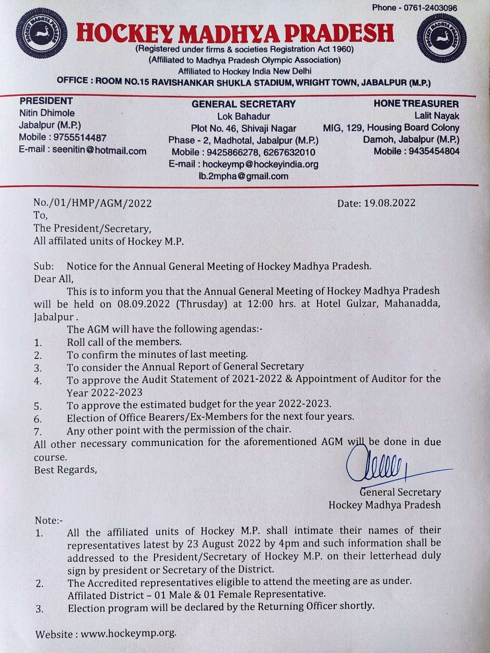 Inauguration was done during the Annual General Meeting of Madhya Pradesh Olympics association at Hotel Gulzar, Jabalpur by Honorable Mr.Kailsh Vijayvargiya,National General Secretary of Bharatiya Janata Party