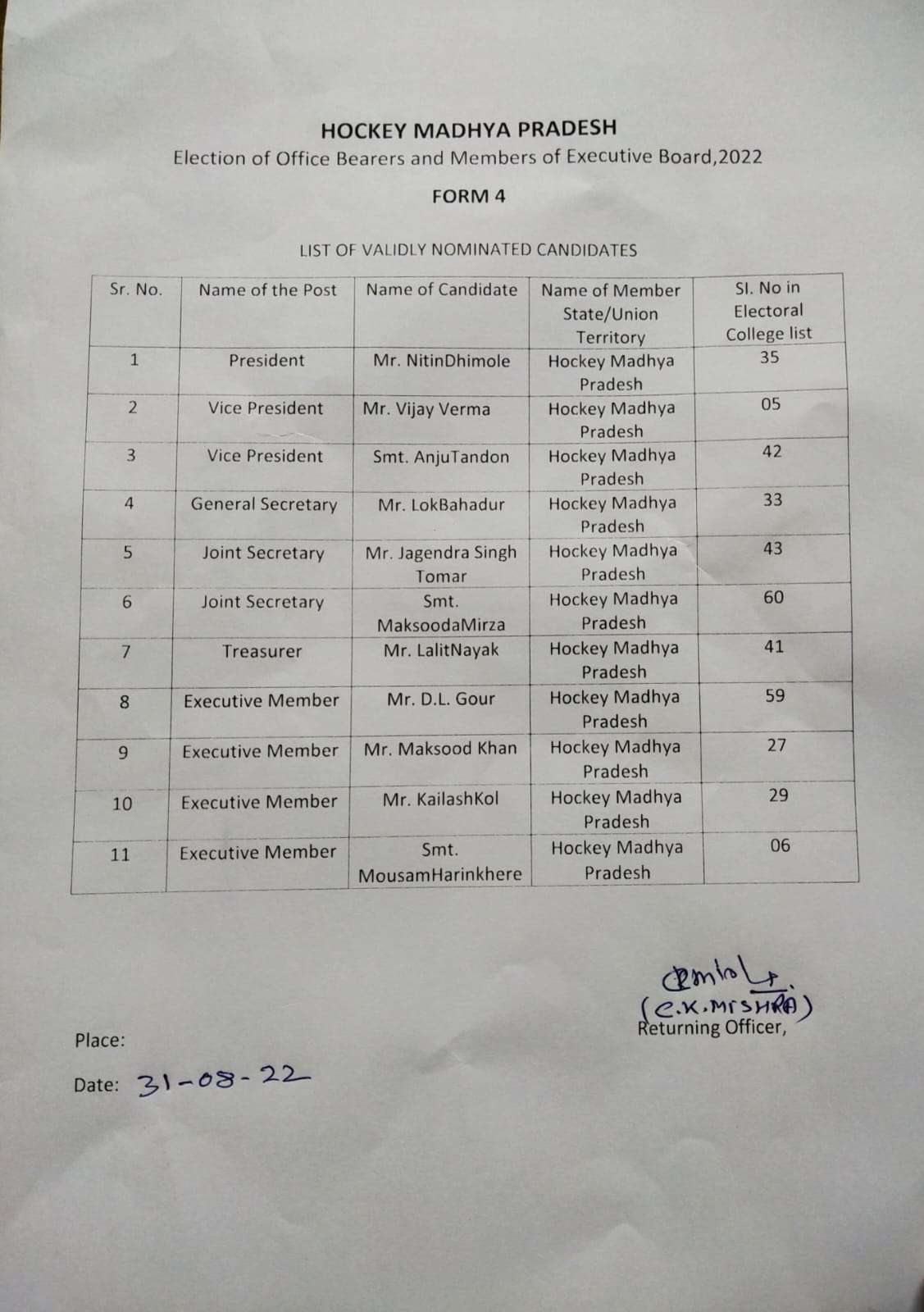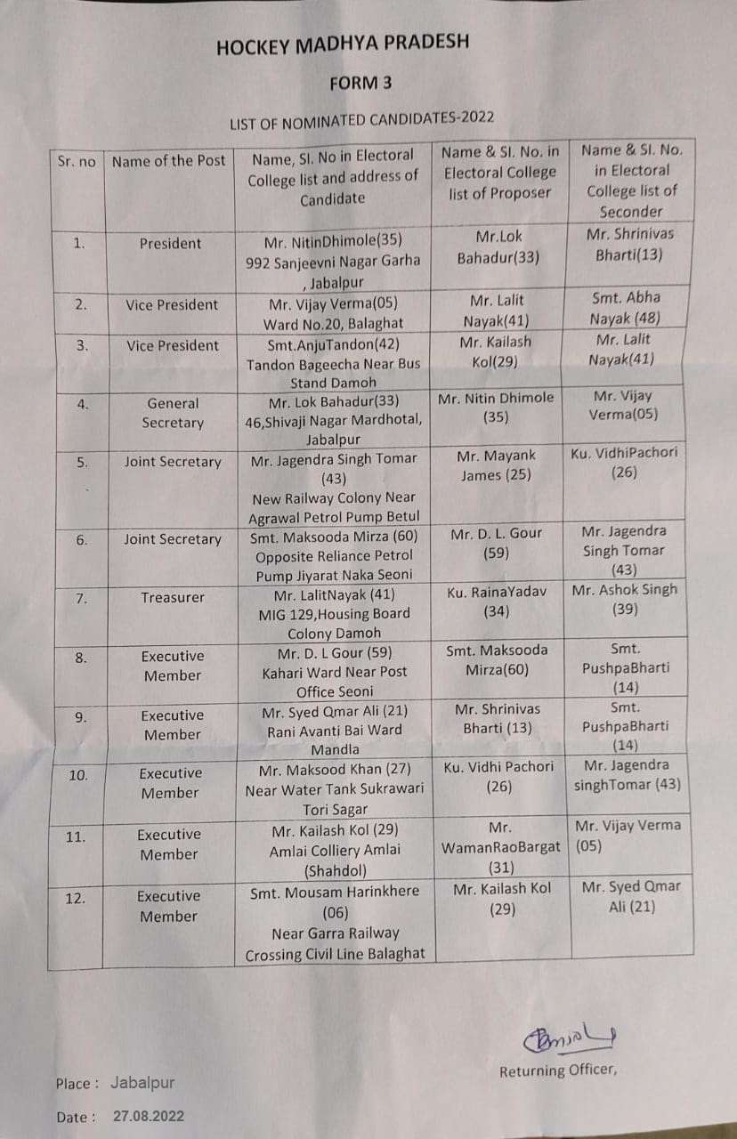 During the championship selection for the Senior Hockey Madhya Pradesh team have been done..For this selection, a selection committee was deputed by Hockey Madhya Pradesh. Championship was very well organized and managed by the organizing committee.