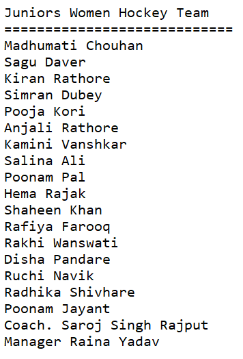 The championship was successfully conducted in Itarsi MP from 14 February to 21 February 2021.A total of 30 teams of Hockey Madhya Pradesh have participated in the tournament.For the conduct of the championship there were 12 Umpires/ Technical officials were deputed.All the arrangements for the players and officials were very well managed by the organizing committee.