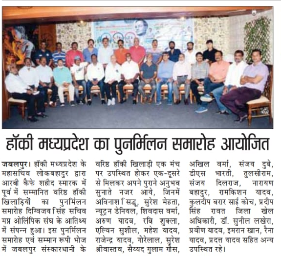 हॉकी म. प्र. के तत्वधान में आयोजित राष्ट्रीय खेल दिवस एवं जबलपुर के वरिष्ठ हॉकी खिलाड़ियों का सम्मान समारोह माननीय श्री राकेश सिंह सांसद जबलपुर के मुख्य आतिथ्य एवं श्री दिग्विजय सिंह, सचिव म. प्र.ओलंपिक संघ की अध्यक्षता, एवम् श्री नितिन ढीमोले, अध्यक्ष हॉकी म. प्र.के विशेष आतिथ्य में संपन्न हुआ।